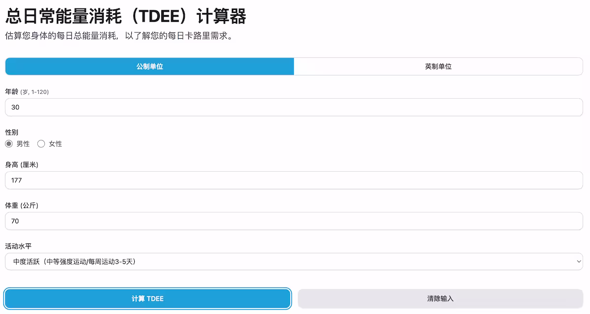 很多人最大的错误就是用"通用2000卡饮食"。我们的TDEE计算器会让你输入真实数据,这才是为你量身定做的。